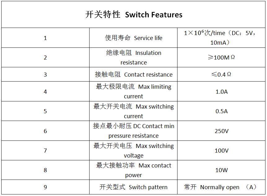 ● 无待机功率消耗,常开、常闭、单刀双掷型可选
